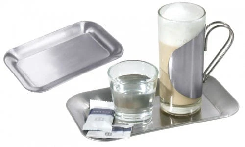 5x Ovales Serviertablett DAILY aus Edelstahl 18/10. hochglänzend. mit gebördeltem Rand. Länge: 23 cm. Breite: 17.5 cm. Höhe: 1.1 cm spülmaschinengeeignet