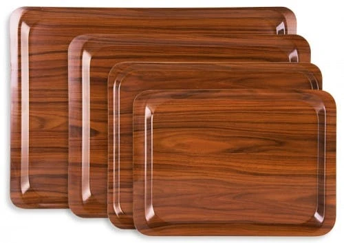 5x Ovales Tablett aus melaminbeschichtetem 3 mm-Pressholz. Nussbaum-Dekor. spülmaschinengeeignet. schlagfest und bruchstabil. temperaturresistent von -10C bis +100C. säure-. laugen-. UV-beständig Länge: 26.5 cm. Breite: 20 cm. Höhe: 1.5 cm
