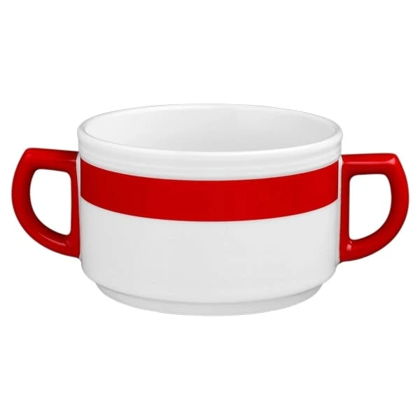 6 x Seltmann Obere zur Suppentasse 0,35 l, Form: Vitalis, Dekor: 34929 dunkelrotes Band