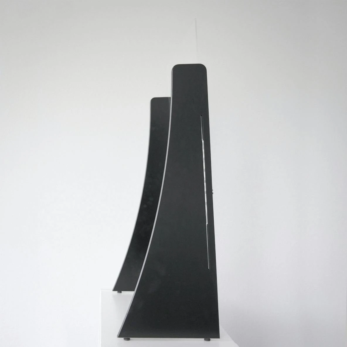 Die hölzernen Seitenteile sind wahlweise in Weiß oder Schwarz, die Scheibe ist in einer Kunststoff- und einer Einscheibensicherheitsglas-Ausführung (ESG) erhältlich.